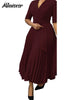 African Pleated A-Line Dress for Women – V-Neck High-Waist Office Dress with Belt